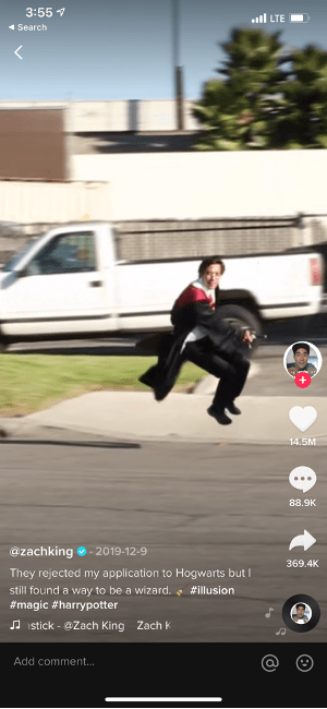 TikTok allowed Zach to raise his game even more. With the post of his first TikTok video, @zachking quickly became the third most followed creator on the platform. And last December, he won the distinction of having the most viewed TikTok video with 2.1 billion views. Ironically, his magic went magical in this viral piece of Zach riding a broomstick!